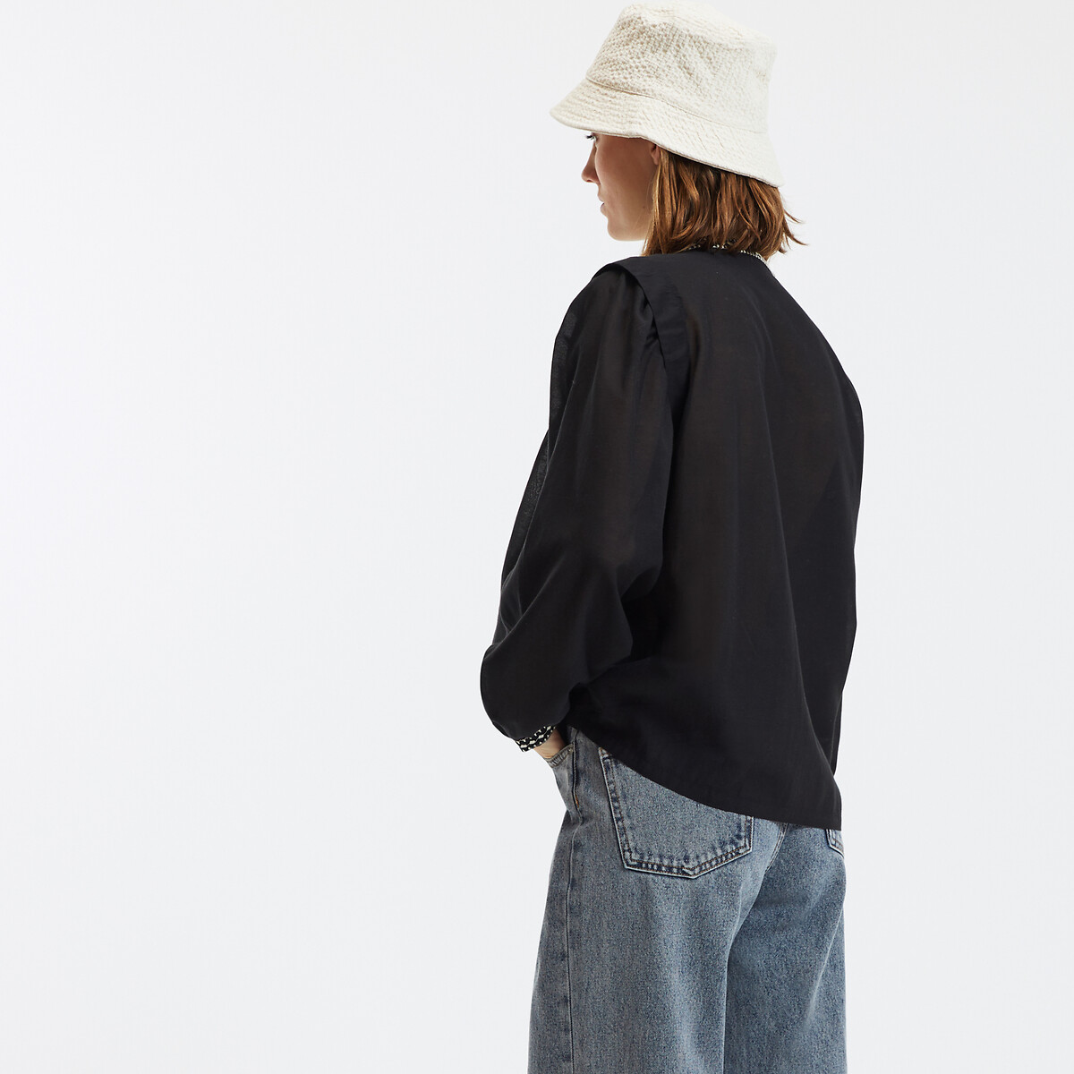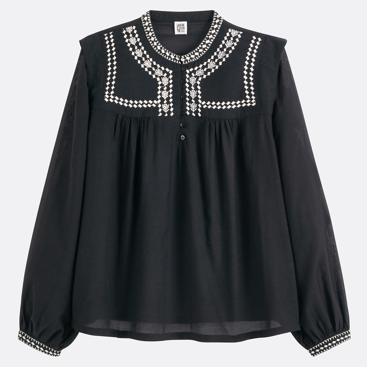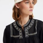 Etnik işlemeleri ve dökümlü yapısıyla öne çıkan bu bluz, günlük şıklığa karakter katıyor.