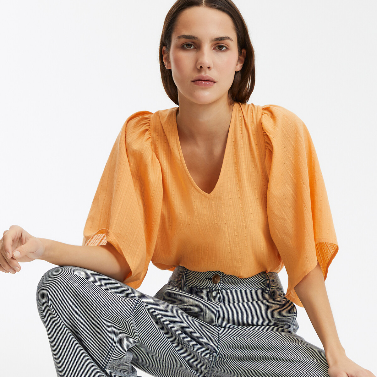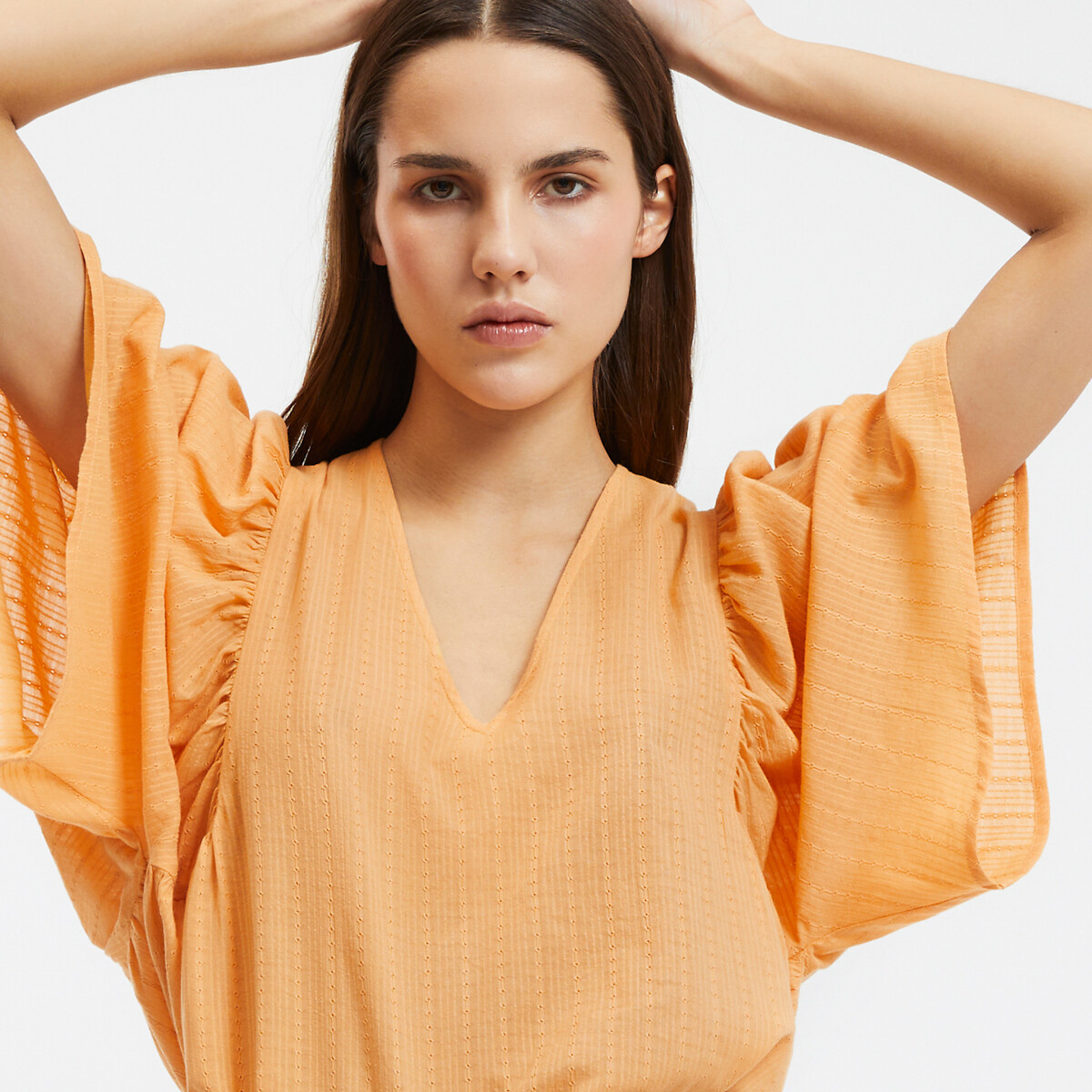 Yumuşak dokulu kumaşı ve dökümlü formuyla dikkat çeken bu V yaka bluz, hacimli kol detayları sayesinde sade şıklığa modern bir hava katar. Geniş kesimi sayesinde gün boyu konfor sunarken, rengiyle enerjini yükseltir. Günlük kombinlerden özel gün stillerine kadar geniş bir kullanım alanı sunar. Modern gardıropların gözde parçalarından.