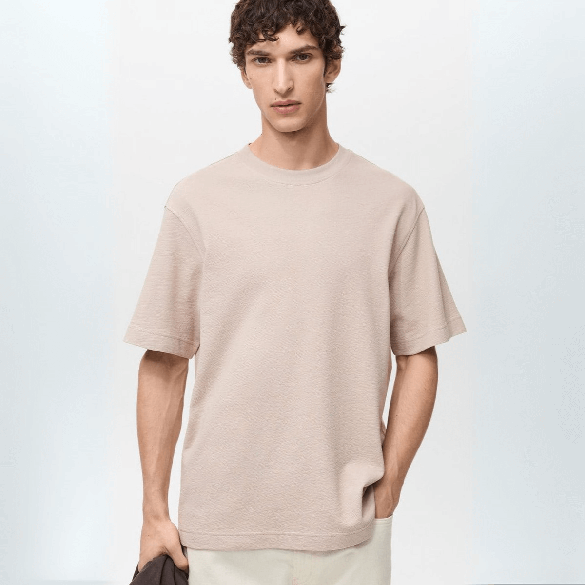 Yumuşak pamuk karışımlı dokusu ve oversize’a yakın relaxed kalıbıyla bu tişört, konforu ve sadeliği modern çizgilerle buluşturuyor. Dikiş detaysız sade görünümü, ister tek başına ister katmanlı kombinlerde güçlü bir zemin oluşturur. Bej tonunun zamansızlığı sayesinde dolabının en çok kullanılan parçalarından biri olmaya aday.