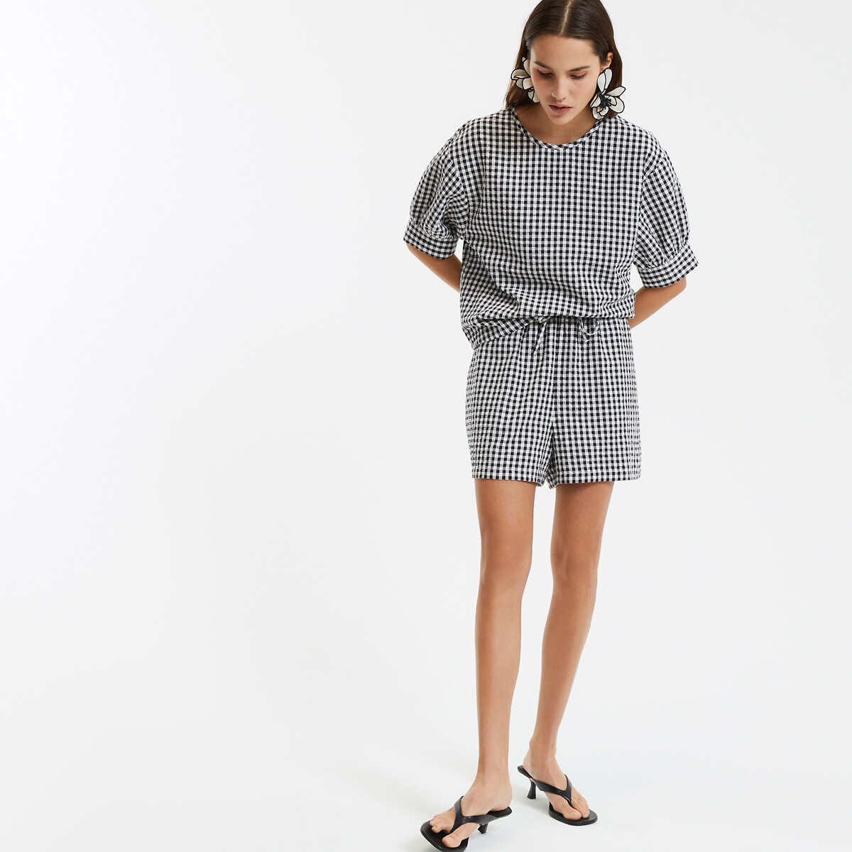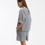 Modern ekose deseni ve oversize kalıbıyla dikkat çeken bu tasarım bluz, günlük stilin konforla buluştuğu güçlü bir seçenektir. Kıvrılmış kol detayları ve bol kesimiyle dinamik bir duruş sunarken, hafif yapısıyla yaz aylarında ferahlık sağlar. Şort, etek ya da denim pantolonlarla kolayca kombinlenebilir. Hem sade hem stil sahibi bir görünüm yakalamak isteyenler için tasarlandı.