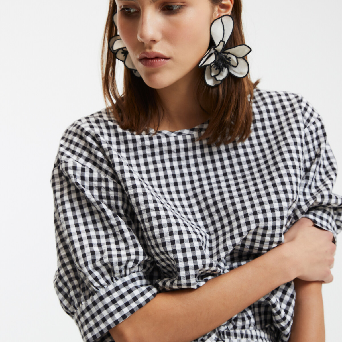 Oversize Ekose Dokulu Tasarım Bluz